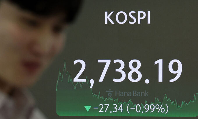 30일 한국거래소에 따르면 이날 코스피는 전일 대비 27.34포인트(0.99%) 떨어진 2738.19에 장을 마쳤다. 외국인 투자자들이 하루 만에 매도세로 돌아선 것이 영향을 미쳤다. 외국인과 기관 투자자는 이날 코스피 시장에서 각각 4001억원, 3540억원 순매도했다. 반면 개인투자자는 7287억원 순매수로 맞섰다.