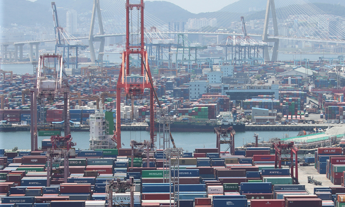 부산 남구 용당부두에 컨테이너들이 잔뜩 쌓여있다. 뉴스1