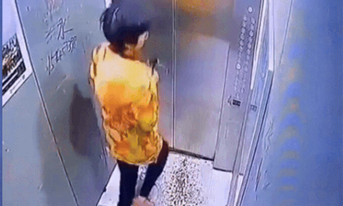 웨이보 등 소셜미디어에 공유된 영상을 보면, 한 여성이 엘리베이터 안으로 들어오더니 제자리에서 뛰기 시작한다.
