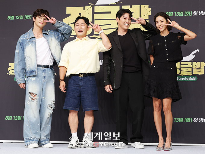 서인국, 이승윤, 류수영, 유이(사진 왼쪽부터)가 12일 오후 서울 양천구 목동 SBS에서 진행된 ’정글밥’의 제작발표회에 참석해 포즈를 취하고 있다.