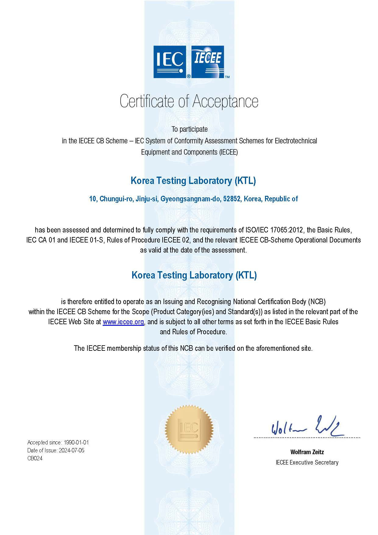 IECEE는 회원국 인증기관에서 발급한 국제공인인증서(IECEE-CB인증서)와 성적서를 추가 시험 없이 상호 인정해 국가 간 무역을 증진시키기 위한 국제적합성 평가제도다. 전 세계 53개국이 가입돼 있다.