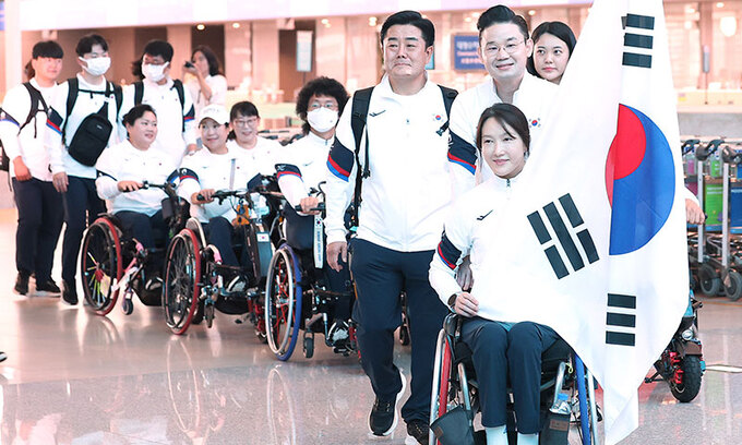 2024 파리 패럴림픽에 출전하는 펜싱 조은혜(앞) 등 대한민국 선수단 본진이 21일 인천국제공항을 통해 결전의 땅 파리로 출국하고 있다. 28일(현지시간)부터 다음달 8일까지 열리는 파리 패럴림픽에 한국은 17개 종목 177명(선수 83명, 임원 94명)의 선수단을 파견한다. 한국은 이번 대회 목표를 금메달 5개 이상 획득, 종합 순위 20위권 진입으로 잡았다.