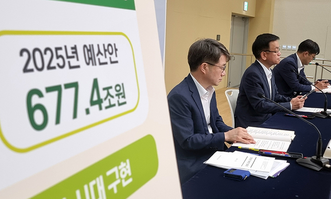 어제 국무회의를 통과한 2025년도 예산안은 올해보다 3.2% 늘어난 677조4000억원 규모다. 총지출 증가율이 3% 안팎에 머문 긴축재정이다. 정부는 불필요한 지출 24조원을 줄여 국내총생산(GDP) 대비 관리재정수지 적자 비율을 재정준칙 한도(3%) 내인 2.9%로 맞추겠다고 했다. 3년 연속 건전재정 기조를 이어가겠다는 건 바람직한 방향이다. 정부는 가용예산을 총동원해 맞춤형 약자복지 확충, 경제활력 확산, 미래대비 체질개선, 안전사회 등 4대 분야를 집중적으로 지원한다는 구상이다. 기초생활 보장 생계급여액 인상, 공공주택 공급 확대, 기초연금 상향 등이 골자다. 지난해 대폭 줄인 연구개발(R&D) 예산도 11.8% 늘어난 30조원으로 책정됐다. 의료 개혁에 10조원의 재정이 처음 투입되는 점도 주목된다. 5년간 전공의 수련 국가지원, 지역필수의사제 도입, 의료사고 안전망 구축 등에 투입된다.