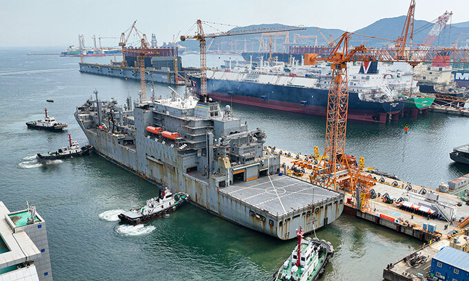 4만t급 미국 해군 군수지원함 ‘월리 쉬라’호가 2일 창정비를 위해 한화오션 경남 거제사업장에 입항했다. 국내 조선사가 미 해군 함정 유지·보수·정비(MRO)를 맡은 것은 이번이 처음으로, 월리 쉬라호는 약 3개월간의 함정정비 작업을 거친 뒤 미 해군 측에 인도될 예정이다. 한화오션은 이번 수주를 통해 연간 약 20조원 규모의 미 해군 함정 MRO 시장 진출은 물론 글로벌 방산 수출 확대의 교두보를 마련하게 됐다.