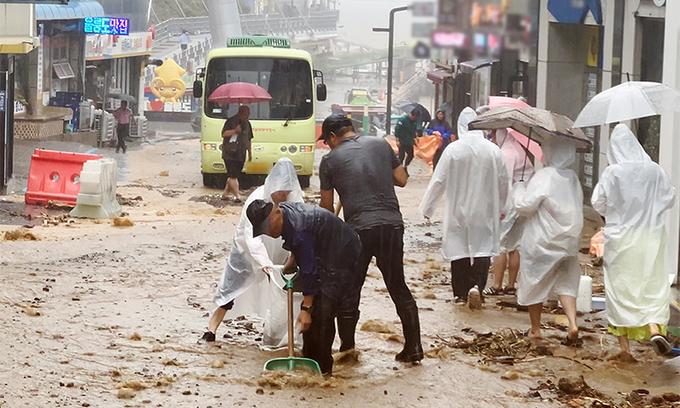 행정안전부 등에 따르면 울릉군 폭우로 긴급대피한 주민은 449세대 729명이고 13일 오전 4시 기준 귀가하지 못한 이재민은 106세대, 187명이다. 울릉군에는 전날 울릉에는 시간당 70㎜ 폭우가 내렸다. 11∼12일 이틀 새 누적 강수량은 308.7㎜로 기록됐다.