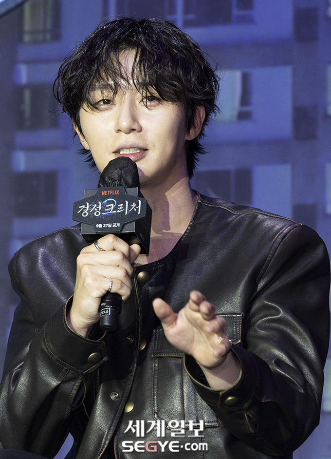 배우 박서준이 25일 오전 서울 용산 드래곤시티 호텔에서 진행된 넷플릭스 오리지널 ‘경성크리처 시즌2’ 제작발표회에 참석해 취재진의 질문에 답하고 있다.