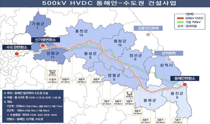 동해안-수도권 송전선로 건설사업 개요도. 한전 제공