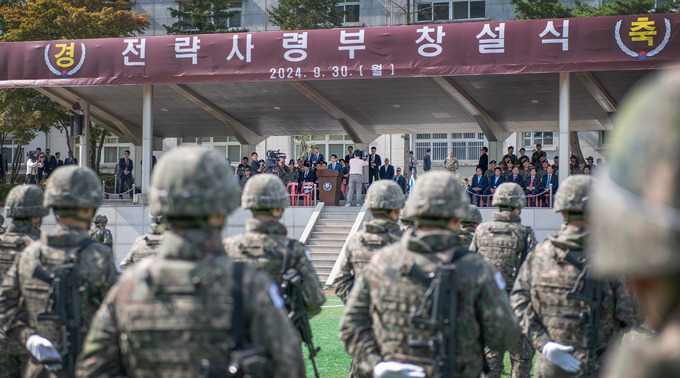 국방부는 30일 서울 관악구 남태령 수도방위사령부 연병장에서 김용현 국방부 장관 주관으로 전략사령부 창설식을 거행했다고 밝혔다. 공식 창설일이 국군의 날인 1일 휴무일이어서 하루 앞서 창설식을 개최하게 됐다고 국방부 관계자는 전했다. 이 자리에는 김명수 합참의장, 각 군 총장, 폴 러캐머라 주한미군사령관 등이 참석했다.