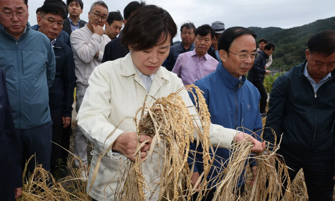 송 장관은 "지자체, 기술센터, 농협 등은 긴밀히 협업해 공동방제와 기술 지도를 철저히 실시하고 피해 벼 매입을 차질 없이 이행해 농가 피해를 최소화하는 데 최선을 다해달라"고 말했다.