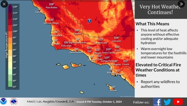 LA 카운티 서북부 우드랜드 힐스에서는 화씨 113도(섭씨 45도)를 기록해 이전 최고치인 1980년 10월 1일의 화씨 110도(섭씨 43도)를 넘은 것으로 나타났다. LA 카운티 동북부 랭커스터에서는 화씨 103도(섭씨 39도)로, 2020년 같은 날의 화씨 100도(섭씨 38도)를 웃돌았다.