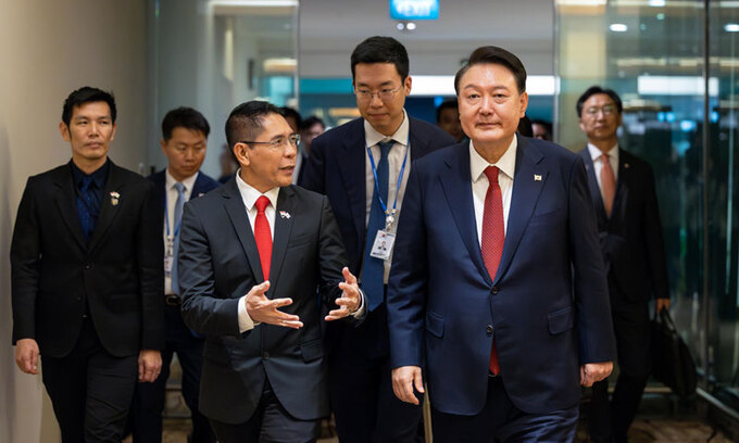 윤 대통령은 정상회담에 앞서 타르만 샨무가라트남 대통령과도 면담한다.