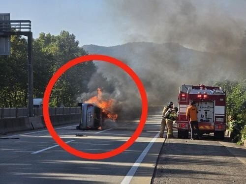 구조 과정에서 고속도로 이용객 2명도 이 경사를 도왔다.