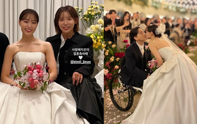 이후 많은 스타의 사회관계망서비스(SNS)에는 결혼식 축하 글과 인증샷이 쏟아졌다. 시크릿 출신 정하나(활동명 징거) 역시 ‘사랑해 지은아, 결혼 축하해♥’라며 신부대기실에 앉아있는 송지은과 나란히 찍은 사진을 게재했다.