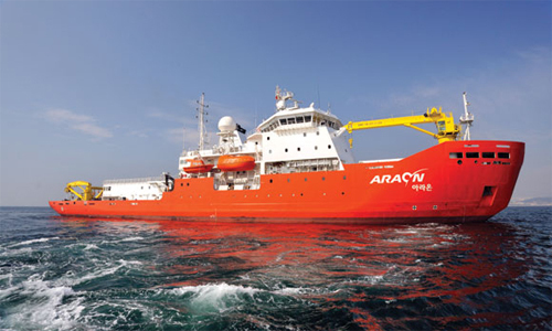 국내 유일 쇄빙연구선 아라온호가 북극해에서 해빙(바다 얼음) 감소 및 오징어 출현 등 지구온난화의 영향을 직접 확인했다.