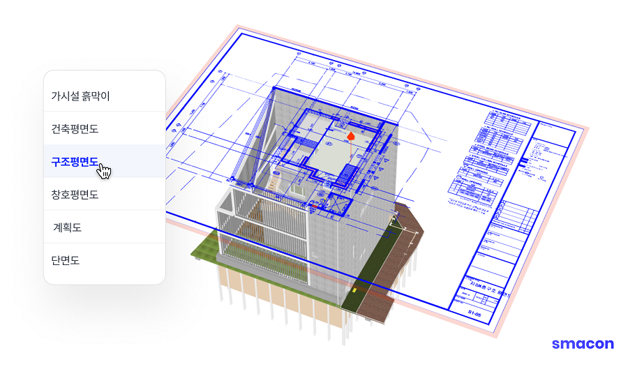스마콘(smacon)은 사용자가 제공한 설계도면을 기반으로 3D BIM 모델링, 산출서, 내역서를 제공하는 웹 솔루션이다. 해당 솔루션은 기존 건축 시장에서 정보 비대칭성으로 인한 협업 문제를 해결하여 디지털 혁신을 가능하게 하며, 건축 시장에서의 경쟁력을 더욱 강화하고 있다는 것이 회사 측의 설명이다.