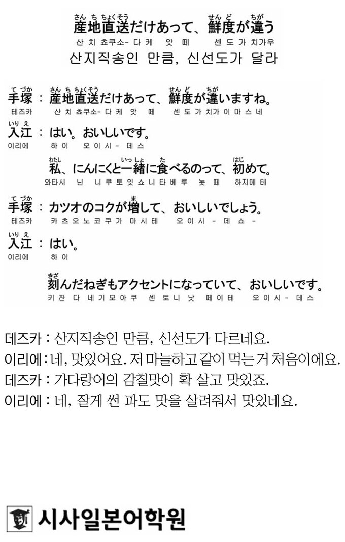 [시사일본어학원의 초단기 일본어 회화] 산지직송인 만큼, 신선도가 달라