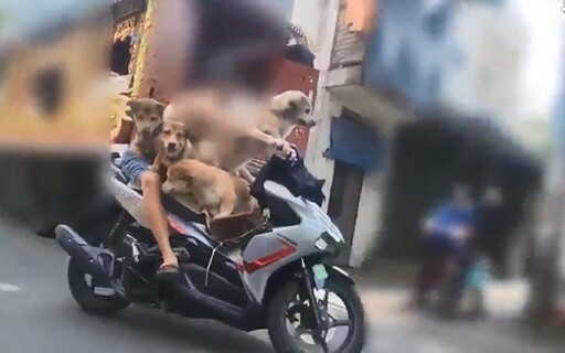 베트남의 도로에서 개를 4마리나 태우고 오토바이를 모는 남성의 영상이 찍혀 논란이 됐다.