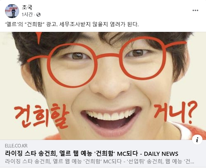 패션지 ‘엘르’의 배우 송건희를 진행자로 내세운 웹 예능 런칭에 조국 조국혁신당 대표가 6일 엘르에 대한 당국의 세무조사를 우려했다.