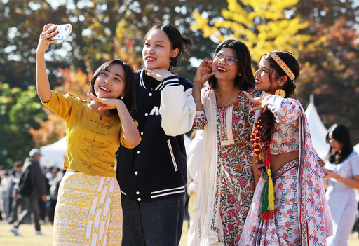 7일 경기 수원시 아주대학교에서 열린 ‘2024 아주 인터내셔널 데이’ 행사에서 외국인 유학생들이 함께 사진을 찍으며 즐거워하고 있다. 올해 아주 인터내셔널 데이는 외국인 유학생들이 한국 학생들과 함께 각국 음식과 문화를 선보이고, 한국 문화를 경험하는 체험 행사로 구성됐다.