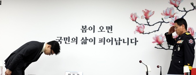 한 대표는 “지난 2월, 경북 문경 화재현장에서 구조활동 중 소방공무원 두 분께서 순직하셨다”며 “당시 유가족께 약속드렸듯이, 두 영웅의 희생이 헛되지 않도록 소방공무원들이 자긍심을 갖고 더 안전하게 근무할 수 있는 환경을 위해 노력하겠다”고 말했다.