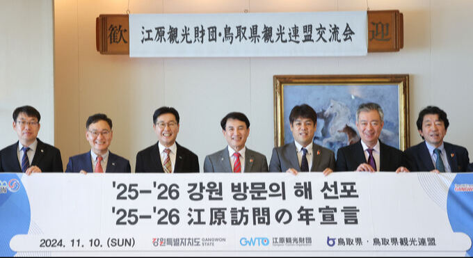 강원특별자치도와 강원관광재단이 일본 돗토리현과 자매결연 30주년을 기념해 관광교류회를 개최했다. 이 자리에서 도와 돗토리현 관광연맹은 관광 네트워크를 구축, 교류 활성화에 협력하기로 하는 한편 ‘2025·2026 강원 방문의 해’에 강원도에서 만나기로 약속했다.