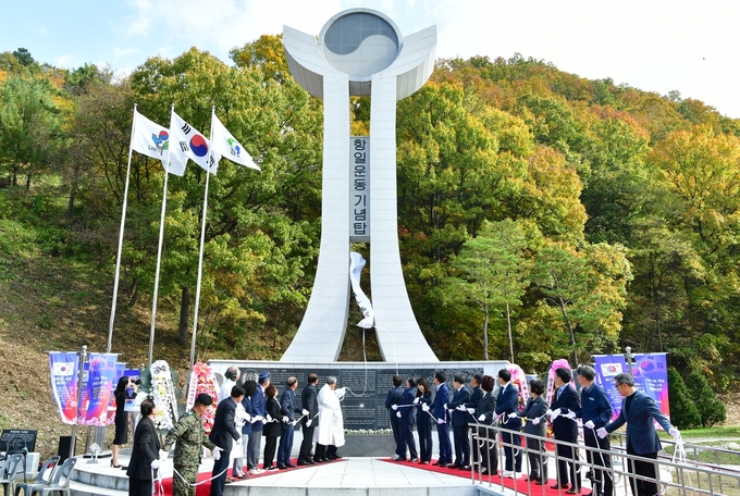 경북 경산시는 13일 남산면 평기리 들기공원에서 '항일운동기념탑' 제막식을 열었다고 밝혔다.