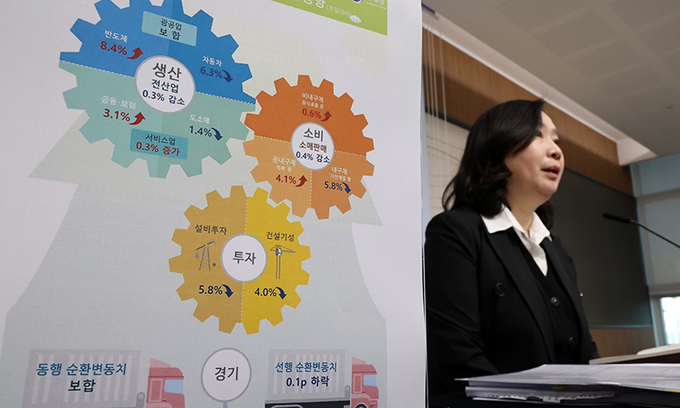 향후 경기를 예고하는 선행종합지수 순환변동치는 전달보다 0.1포인트 하락했다. 공미숙 통계청 경제동향통계심의관은 “제조업·서비스업 생산은 견조하지만 소매판매는 1년 전과 비교하면 마이너스”라며 “설비투자는 좋은 모습으로 가고 있지만 건설쪽은 많이 어렵다”고 말했다.