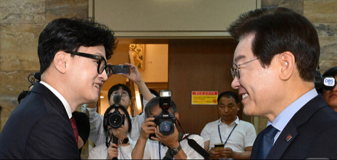 그러면서 "이재명 지지율이 한동훈보다 두 배를 훨씬 넘는 것으로 안다. 한동훈에 대한 국민적 평가는 이만큼 엄중하게 내려앉았다"며 국민 역시 이 대표를 더 신뢰하지 않는가라고 역공에 나섰다.
