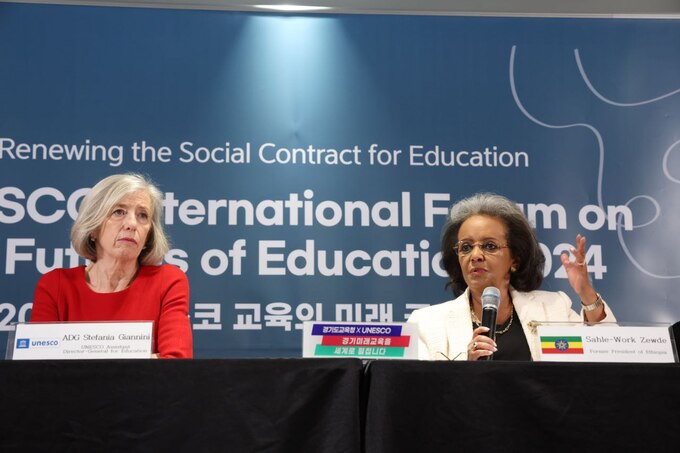 이날 개막식에 앞서 진행된 사전 인터뷰에서 사흘레-워크 쥬드 전 에티오피아 대통령(유네스코 국제미래교육위원장)은 “우리가 직면한 과제는 사회적 불평등 해소를 위한 교육시스템 변혁”이라며 “한국의 성공 사례를 전 세계에 퍼뜨리겠다”고 말했다.