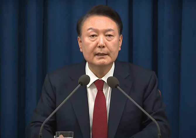 윤석열 대통령이 3일 저녁 서울 용산 대통령실 브리핑룸에서 전격적으로 계엄령을 선포했다.