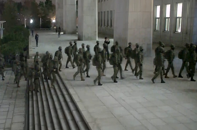 김용빈 선관위 사무총장은 5일 국회에서 열린 행정안전위원회 긴급 현안질의에 출석해 “지난 3일 오후 10시30분쯤 계엄군 10여 명이 선관위 청사 내에 투입됐다”고 밝혔다. 이는 같은 날 오후 10시24분쯤부터 윤 대통령이 TV 생중계로 긴급 대국민 성명을 낭독하기 시작한 지 6분 만이다.