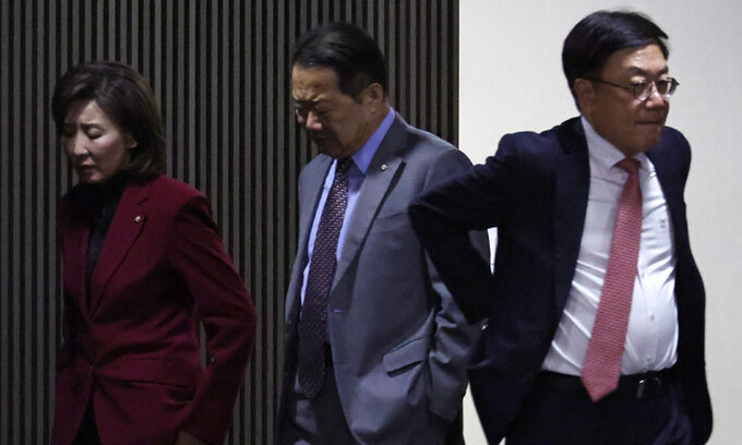 전날부터 이어진 당 의원총회에서는 윤 대통령의 '질서 있는 퇴진'이 필요하다는 의견이 분출됐고, 한동훈 대표는 "여당의 책임감 있는 논리와 역할이 필요하다"며 당 역할 필요성에 힘을 실은 것으로 알려졌다.