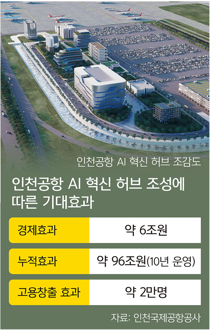 인천공항 AI 혁신 허브는 투자단계에 약 6조원에 달하는 경제효과가 생길 것으로 예상돼 10년간 운영할 경우 약 96조원의 누적효과가 기대된다. 약 2만명에 달하는 일자리 창출 효과가 발생할 것으로 전망된다.