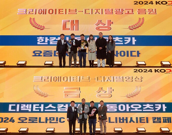 동아오츠카의 나랑드사이다와 오로나민C가 지난 12일 서울 서초구 세빛섬 IFC컨벤션홀에서 열린 2024 대한민국 디지털 광고대상(Korea Digital Advertising Festival)시상식에서 '나랑드사이다 캠페인'으로 크리에이티브-디지털광고 음원 부문 대상을, '텐션 유니버시티 캠페인'으로 크리에이티브-디지털영상 부문 금상을 수상했다. 대한민국 디지털 광고대상은 한국디지털광고협회 주관, 문화체육관광부 후원으로 열리는 국내 최대 규모의 디지털 광고 시상식으로 매년 혁신적인 디지털 마케팅 사례를 발굴해 시상한다.