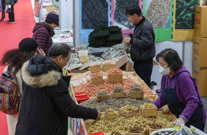 26일 서울 강남구 SETEC에서 2024 서울 경기 우수중소기업 및 농특산물 선물 박람회가 열린 가운데 시민들이 농수산물을 구매하고 있다. 이번 박람회는 26일부터 30일까지 5일간 열리며 각종 농수산물과 우수중소기업의 제품들을 체험 및 구매할 수 있는 박람회이다.