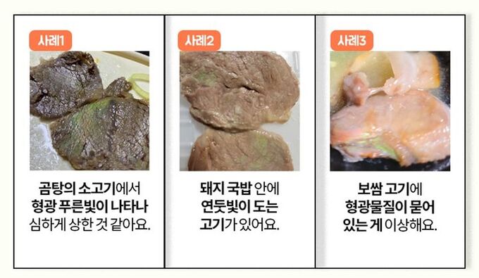 최근 식품안전정보원은 부정·불량식품신고센터에 매년 꾸준히 문의가 있었던 초록 형광빛 고기에 대한 정보를 제공하고자 카드뉴스를 제작·배포했다.