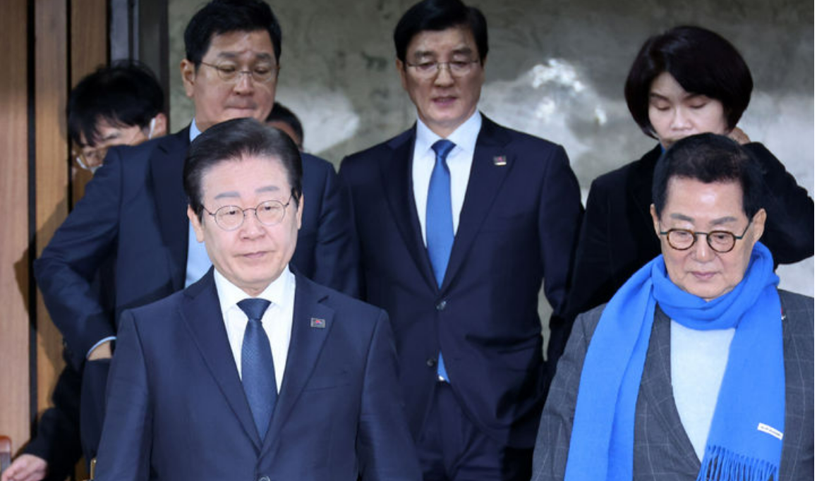 이재명 더불어민주당 대표는 6일 국회 본청에서 당내 중진 의원들과 간담회를 열고 윤석열 대통령 탄핵 정국에 대한 수습 방안 등을 논의했다. 이날 간담회에는 박찬대 원내대표, 김윤덕 사무총장, 김민석 최고위원, 이해식 당대표 비서실장 등 당 지도부도 참석했다.