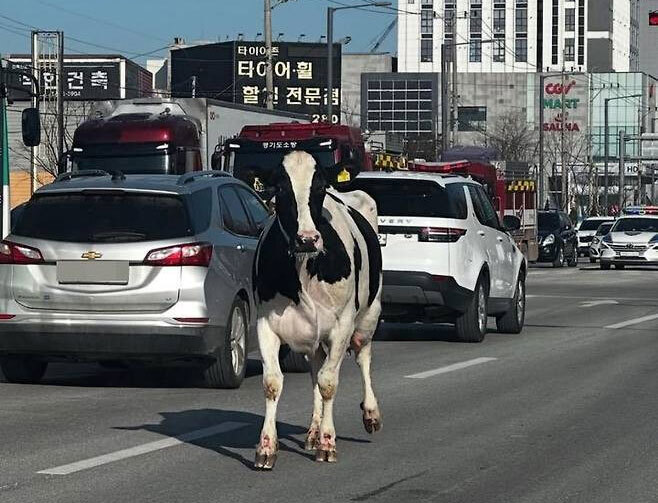 도축장으로 향하던 젖소 두 마리가 트럭에서 탈출해 8차선 도로 위를 방황하는 소동이 벌어졌다. 도망친 젖소들은 포획돼 3시간여 만에 주인에게 인계됐으나, 사회관계망서비스(SNS) 등에선 ‘실시간 평택 상황’, ‘탈출’이란 제목으로 사진이 공유되며 이목을 끌었다.