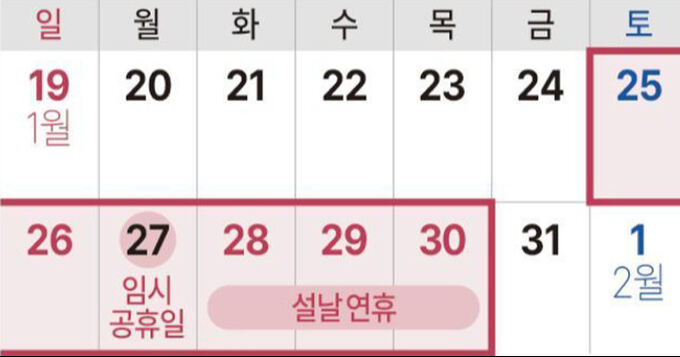 연휴에도 일하는 사람이 적지 않은 가운데 ‘빨간 날’이 아닌 27일에 휴일근무수당을 받을 수 있는지 관심이 쏠린다. 구인·구직 아르바이트 전문 포털 알바천국이 최근 설문한 결과 아르바이트생 585명 중 66.5%가 설 연휴에도 근무한다고 답했다. 시간제로 일하는 사람 중에는 A씨처럼 쉬지 않고 설 연휴에 일하는 사람이 더 많다는 의미다.