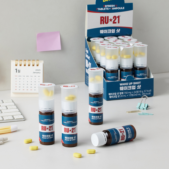‘RU21 웨이크업 샷’은 일반식품으로 정제형과 액상형을 한 병에 담아 휴대 및 섭취가 간편한 이중 제형으로 출시 됐다.