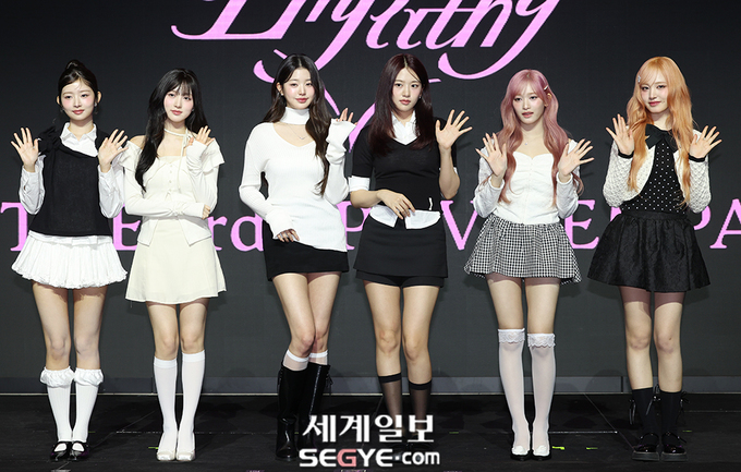 그룹 아이브가 3일 오후 서울 영등포구 콘래드 서울 호텔에서 열린 3번째 미니 앨범 '아이브 엠파시(IVE EMPATHY)' 발매 기자간담회에 참석해 포즈를 취하고 있다.