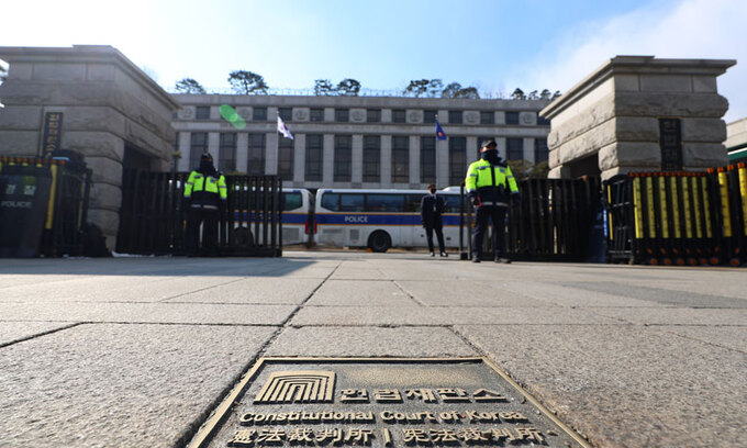최근 실시된 여론조사에서 “헌재를 신뢰한다”고 말한 응답자가 전체 조사 대상의 절반이 조금 넘는 52%에 그쳤다. 여야는 헌재 탄핵심판 선고 결과에 다수 국민이 불복하는 경우 지금보다 훨씬 더 커다란 국가적 혼란으로 이어질 수 있음을 깨닫고 언행에 신중을 기해야 할 것이다. 헌재 역시 정치적 성향에 따라 심판한다고 의심을 받는 일이 없길 바란다. 민주당이 추천한 마은혁 재판관 후보자 임명 보류를 둘러싼 권한쟁의심판 사건 결정을 무리하게 서두르다가 선고 2시간 전에야 취소한 것과 같은 성급함을 다시는 내보여선 안 되겠다.