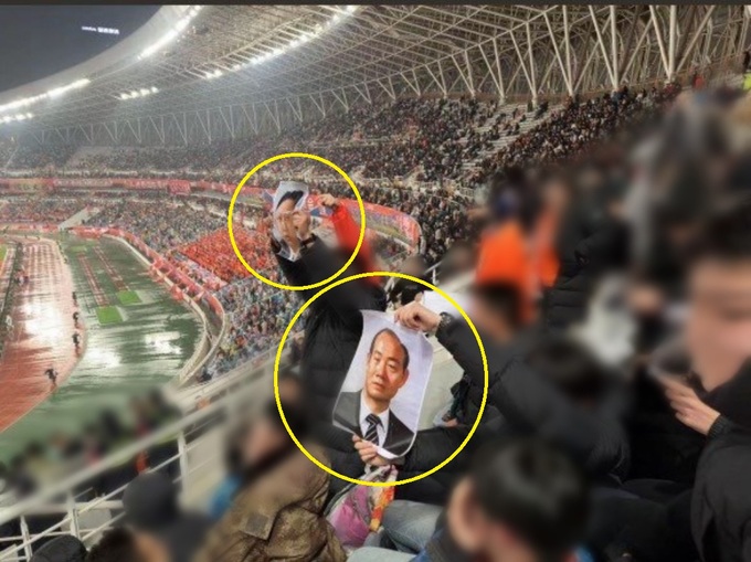 전 전 대통령 얼굴이 인쇄된 종이를 든 일부 관중이 영상에 등장했다. 통상 상대팀 관중을 자극하는 등 도발 행위는 어느 정도 ‘적정선’ 안에서는 경기의 재미를 더하는 요소로 용인되지만, 산둥 팬들의 행위는 그 범위를 벗어났다는 지적이 거세다.