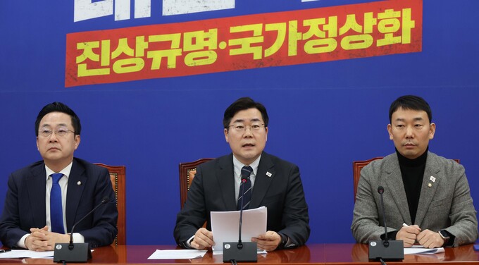 더불어민주당 박찬대 원내대표는 16일 서울 국회에서 기자간담회를 갖고 "윤석열은 명태균의 '황금폰'이 세상에 공개될 경우 자신과 김건희가 치명상을 입을 것을 알고 있었고, 그걸 막기 위해 비상계엄을 선포했다"고 말했다.