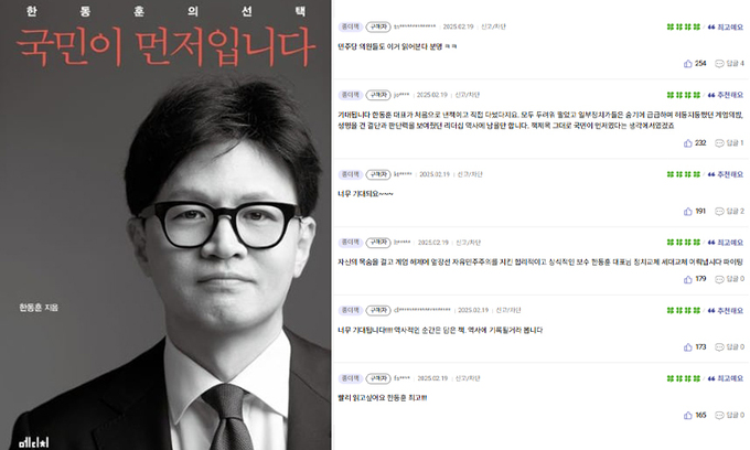 교보문고가 홈페이지에 공개된 ‘책 소개’ 글에는 “이 책에는 계엄의 바다를 건너 새로운 시대로 나아가는 한동훈의 국민을 위한 ‘선택’과 ‘생각’이 오롯이 담겨 있다”고 했다.