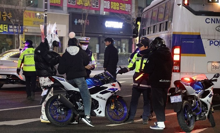 적발 건수는 신호위반 등으로 인한 통고처분 94건, 공동위험행위 2건, 음주운전 5건, 무면허 2건, 불법 개조 8건, 수배 5건, 소음기준 초과 2건 등이다.