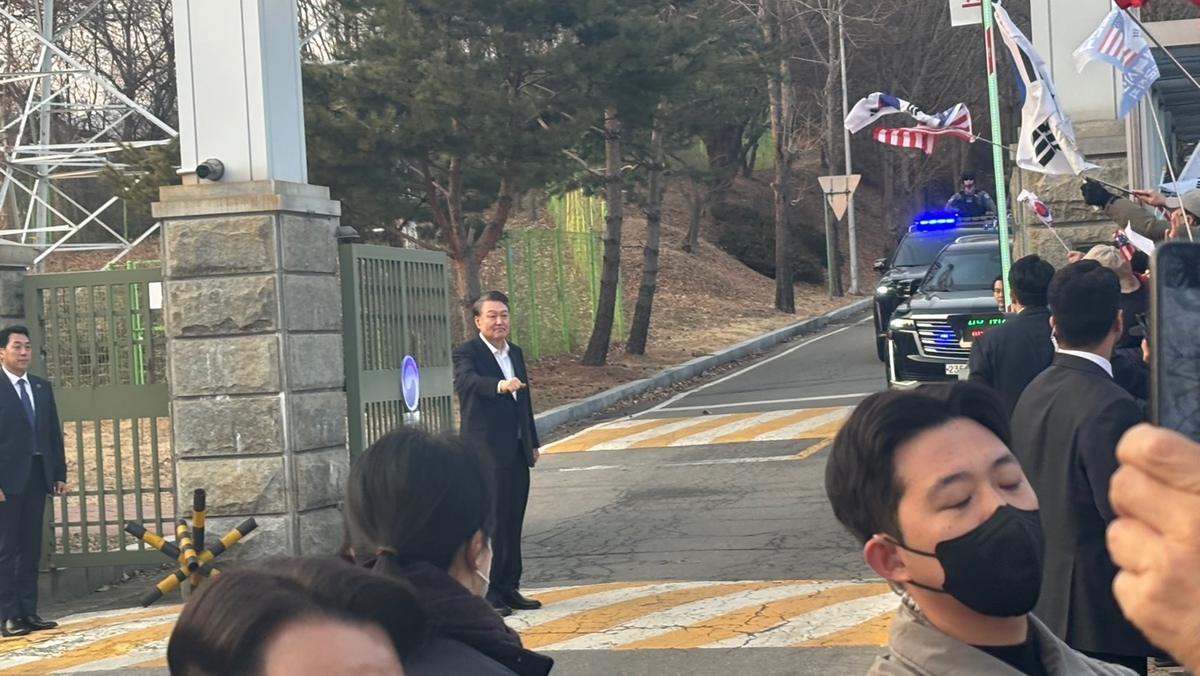 [속보] ‘석방’ 尹대통령, 구치소 정문 나와 지지자들에게 인사