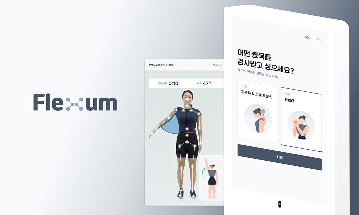 플렉섬은 지난해 8월 산업통상자원부 지원사업으로 선정된 에버엑스가 KMI, 살루스케어와 공동 개발한 키오스크 형태 근골격계 분석 검사 기기다. 수검자는 직접 거북목 검사와 오십견 검사를 3분 이내에 진행할 수 있고 결과도 바로 확인할 수 있다.