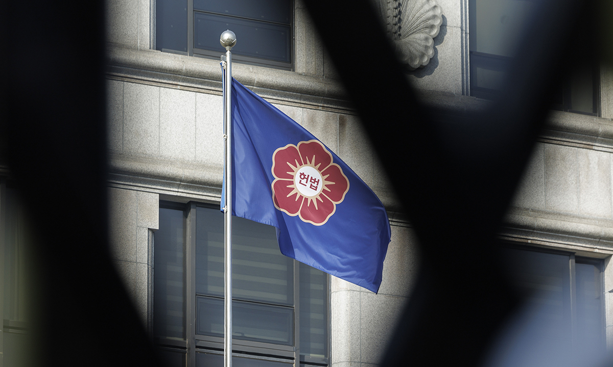 11일 서울 종로구 헌법재판소 청사의 깃발이 바람에 펄럭이고 있다. 연합뉴스
