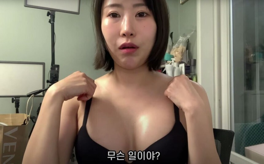 이어 E컵 속옷을 착용한 모습도 보여줬다. "스포츠 브라인데도 가슴이 모인다. 나도 놀랐다"며 만족감을 드러냈다.